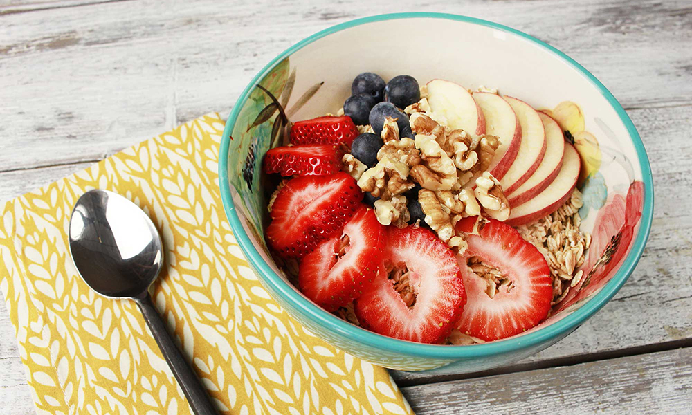 Việc có thêm một số loại trái cây tươi vào ngũ cốc không chỉ có tác dụng gia tăng hương vị của món ăn mà còn giúp bạn tăng cường hấp thu dưỡng chất, đặc biệt là chất xơ. Như đã nói, hàm lượng chất xơ cao sẽ giúp bạn no bụng và ngăn ngừa cơn thèm đồ ngọt hoặc đồ ăn vặt, nguyên nhân khiến bạn thừa cân.